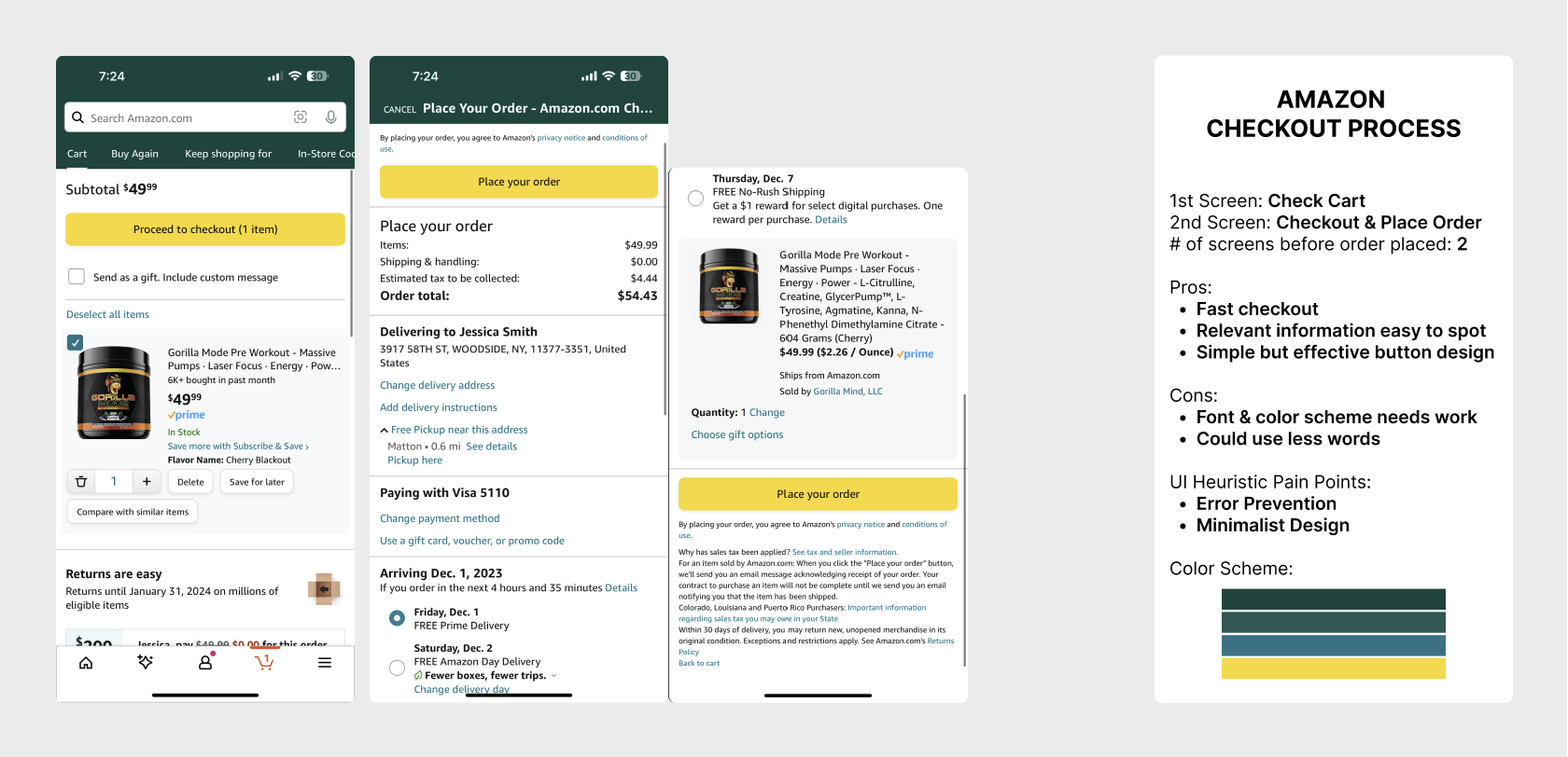Over the years I have noticed software updates improving the UX and UI. With this said, I will implement my personal modifications that I believe will help enhance user satisfaction. To better understand my objectives, let’s look into my analysis for the Heuristic evaluation of Amazons checkout process.