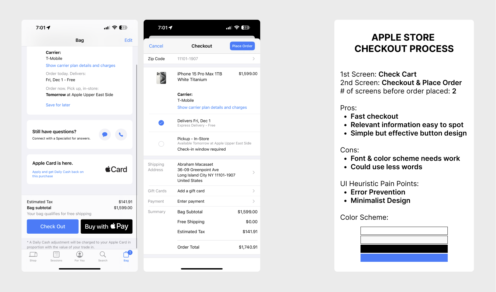 Heuristic Evaluation of existing Checkout User Flow: