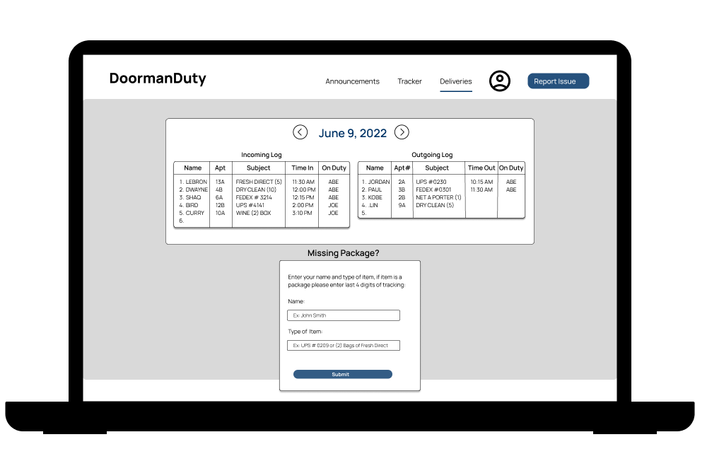 Even though staff is not the main target audience, I thought it was important to provide input from a different perspective. Staff loved the idea of delivery logs because it provides as proof when misplacements occur.