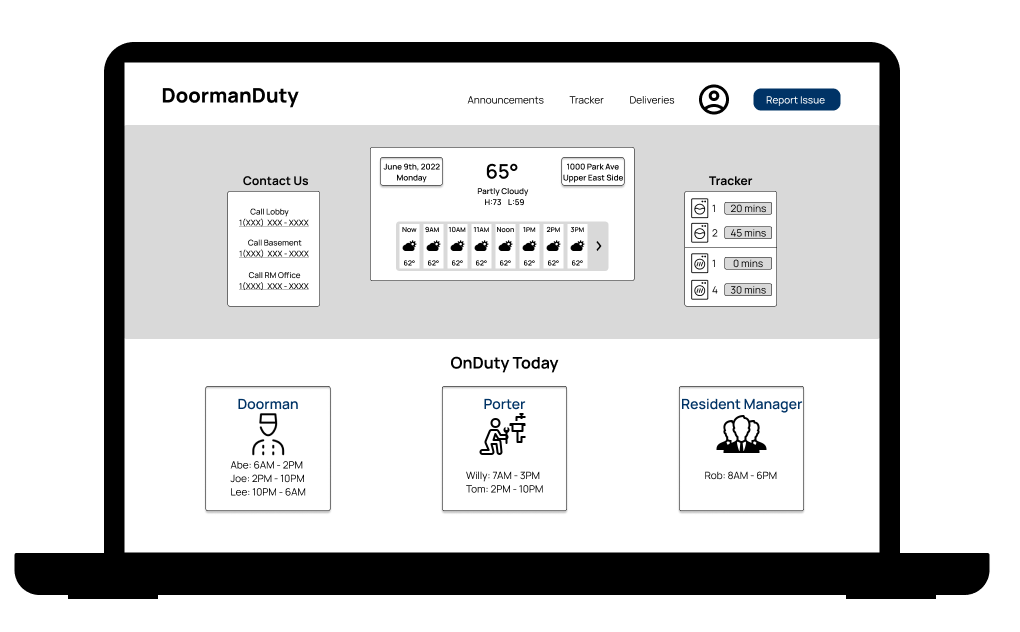 Target Users: Shareholders and tenants that reside in managed buildings that rely on doormans and porters for any assistance.