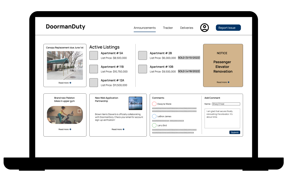 General Tasks: Keep track of building announcements, your incoming/outgoing deliveries, laundry and gym usage with automatic updates. Allow for easy requests for shareholders with any issue or misunderstandings.